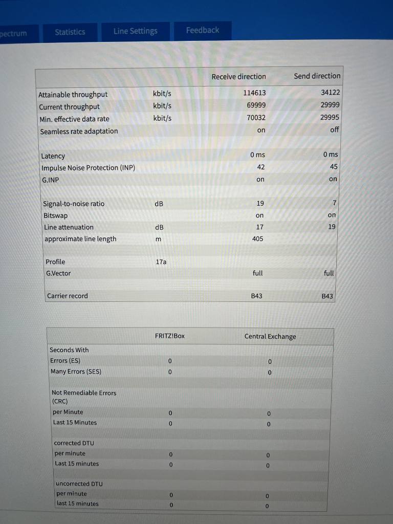 Ter volledigheid nog even een screenshot van de lijnwaarden in Fritz!box: