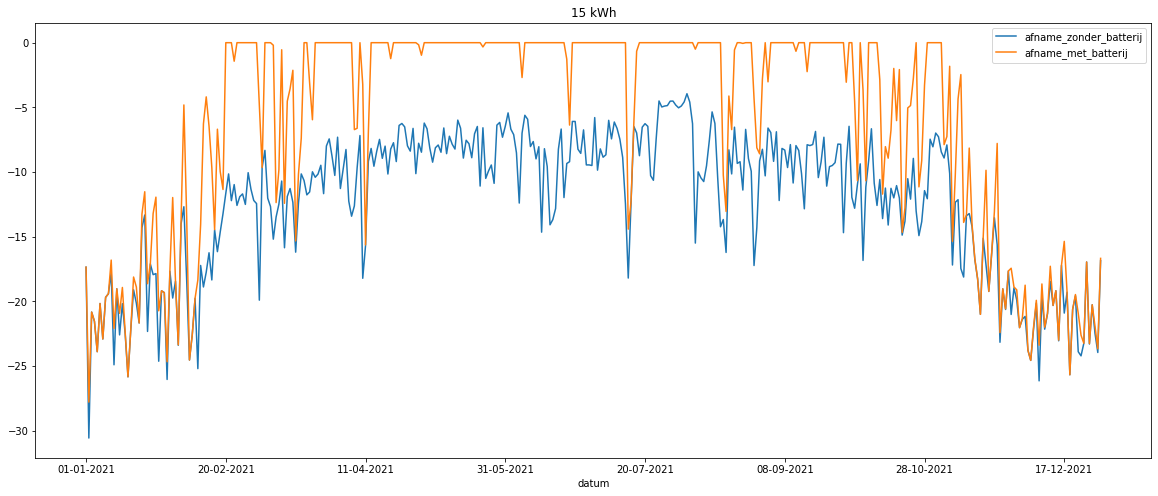 - De parameters van de batterij (kostprijs, capaciteit, DoD)