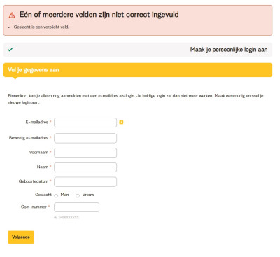 Je kan vanaf nu alleen nog maar aanmelden met een persoonlijke login in de vorm van een e-mailadres. Heb je er al een? Dan zie je die in de volgende stap. Heb je er nog geen? Komt goed! Je maakt er makkelijk een aan.