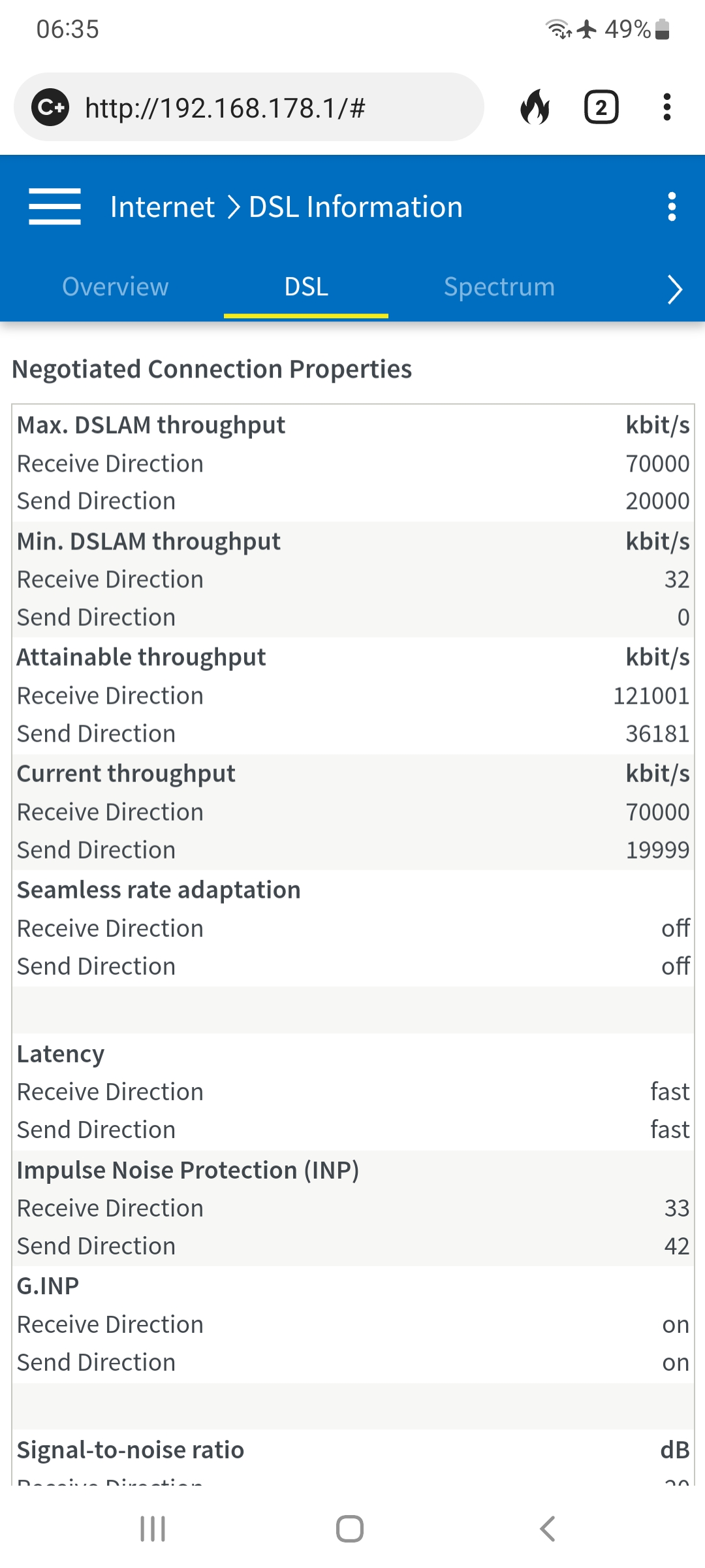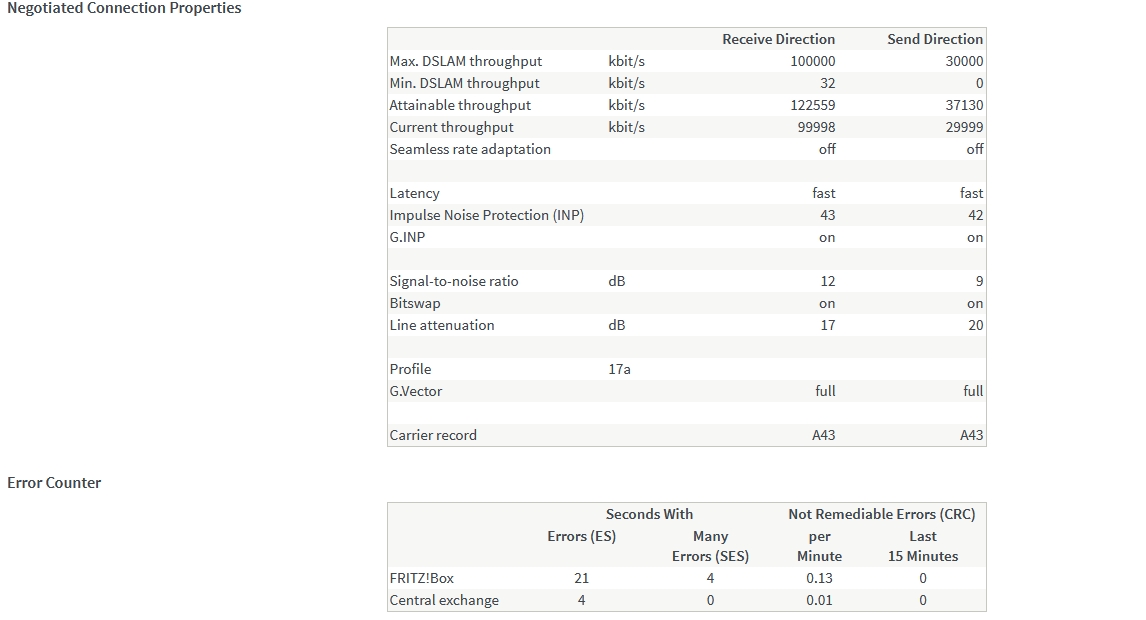 Deze morgen toevallig op de Fritzbox de waardes gelezen op het moment dat de lijn door zijn knieen gegaan is.