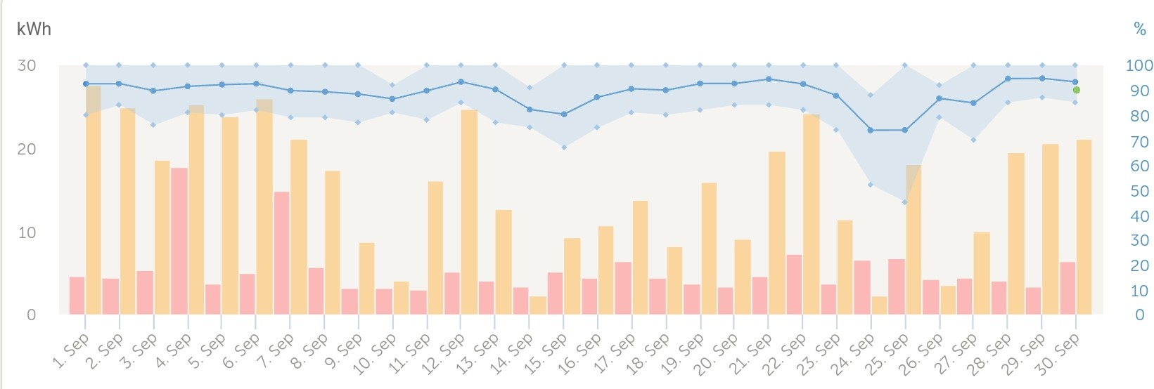 Ik heb in september - net als vorig jaar - héél weinig elektriciteit moeten kopen (= afnemen van het net). Ook tot op vandaag (we zijn toch al ruim 2de helft van oktober) heb ik in oktober niet al teveel elektriciteit moeten aankopen.