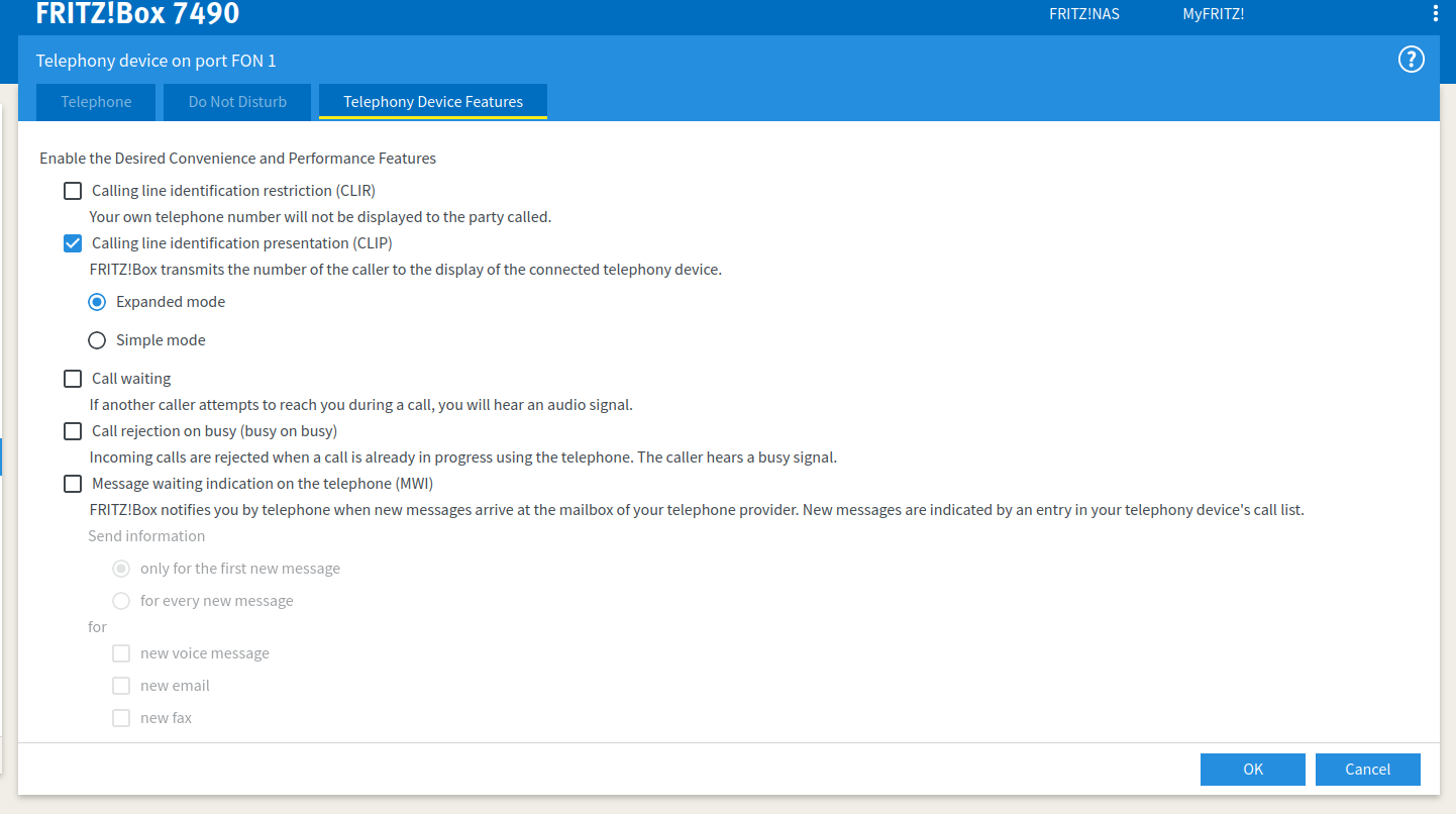 Geen DECT ... (staat bovenaan in de screenshot: Telephony device on port FON 1).Splitter schreef: 15 dec 2022, 18:15 verder zeg je dat het "nog een gewone telefoon" is... dus wss geen fritz!dect?