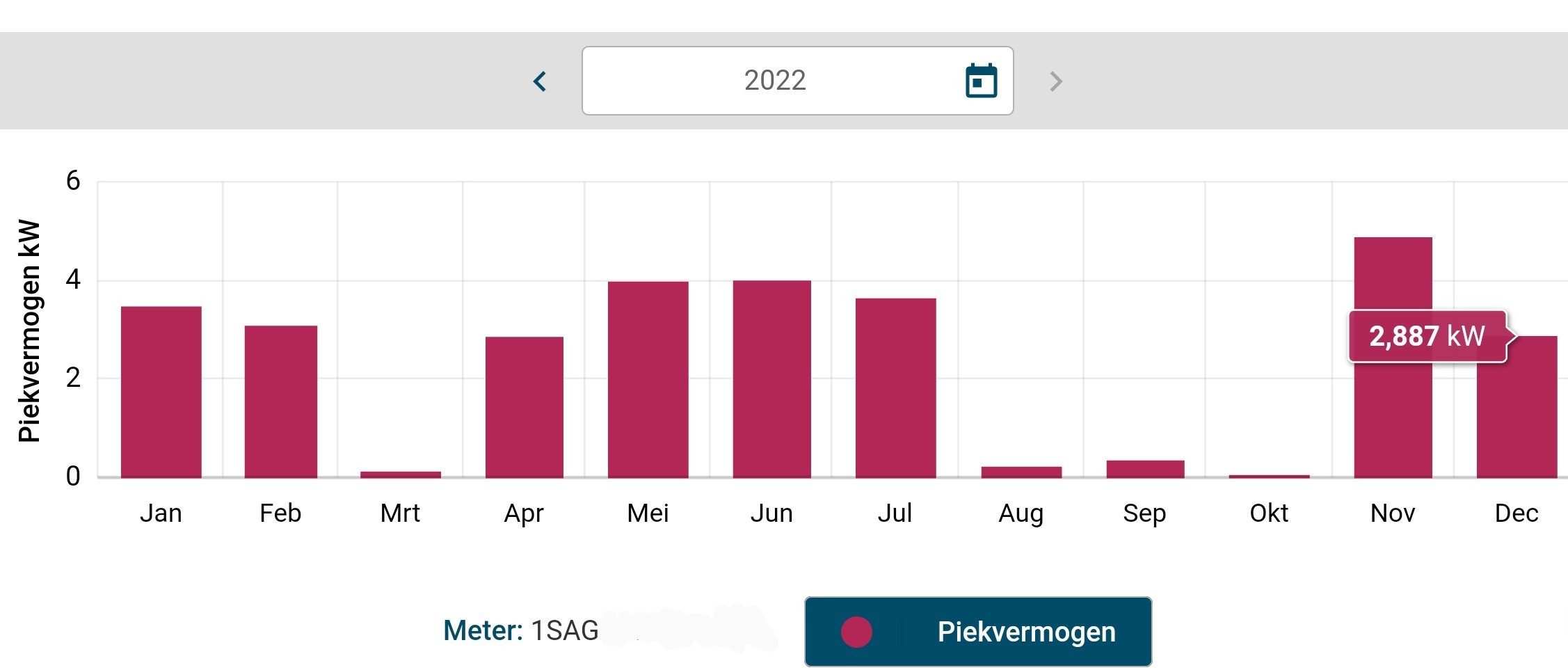 Kijk bv. naar mijn grafiek van de vermogenspieken over geheel 2022, dan kom je, zonder met iets rekening te houden, tot een gemiddelde maandpiek van 3,2 kW.