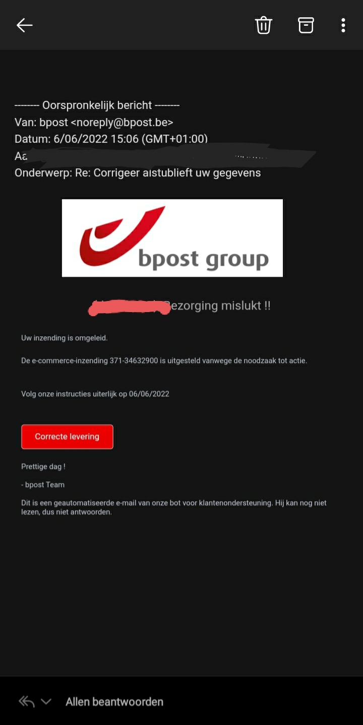 Tegenwoordig krijg ik ook mails die afkomstig zijn van [email protected] of [email protected] die fake zijn en toch bestaan deze adressen ook echt.