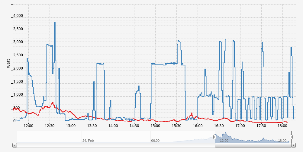 Dit is een grafiek op basis van de locale data per seconde gemeten. Fluvius,… krijgt in het beste geval data per 15 min.