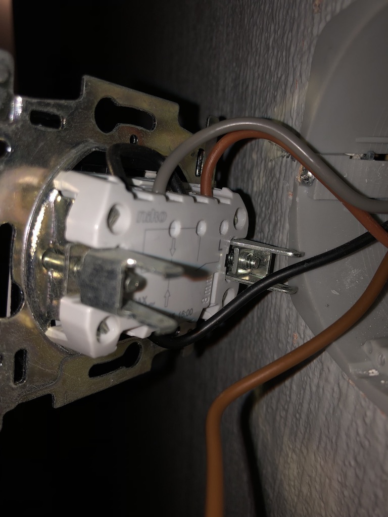 is via een enkelpolige schakelaar voorzien van stroom. Ik heb dus geen Neuter langs het stopcontact lopen. Ik heb dus de Shelly 1L gebruikt achter de schakelaar met het schema zonder neuter. Op zich eenvoudig te schakelen.