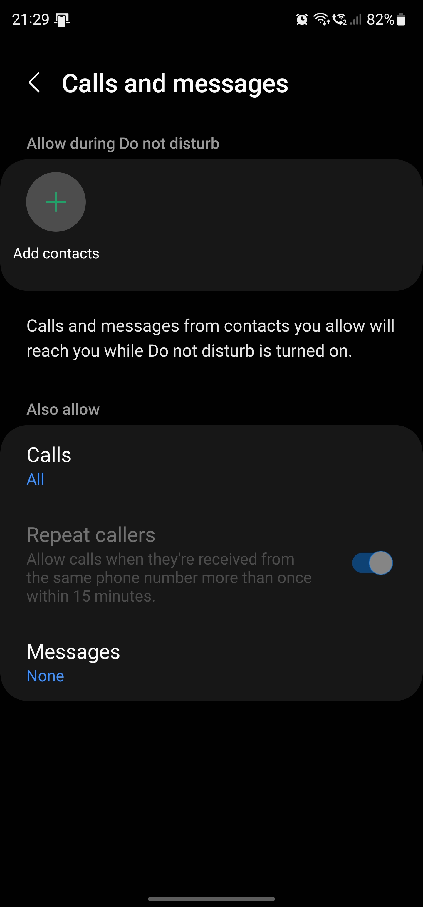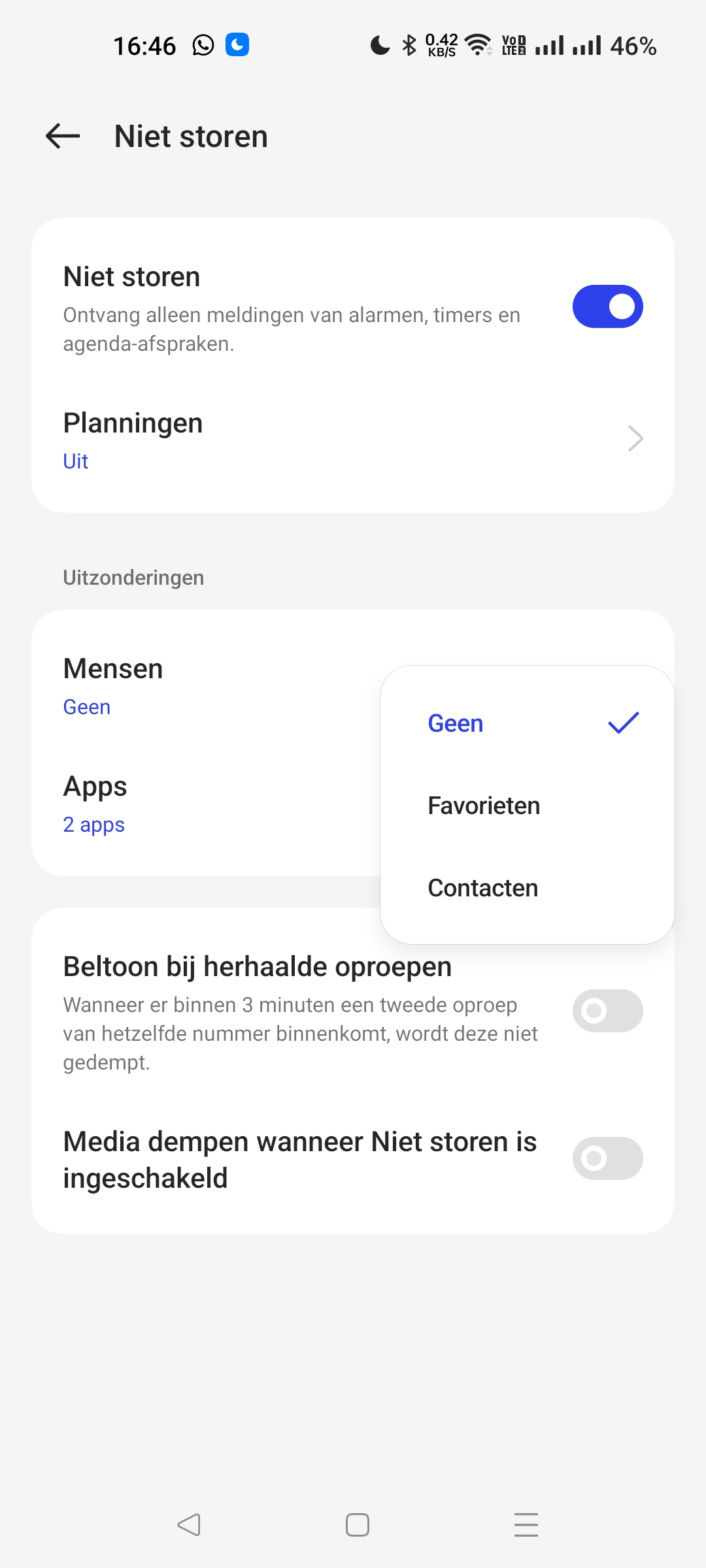 In Android 11 had je de optie om enkel telefoons toe te laten in niet storen, nu is dit enkel favorieten en contacten.