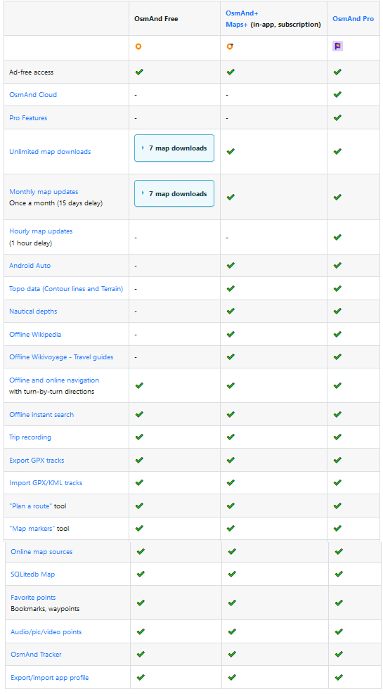 * OsmAnd Pro: Maandelijks abonnement en dan heb je alle functies beschikbaar in de app