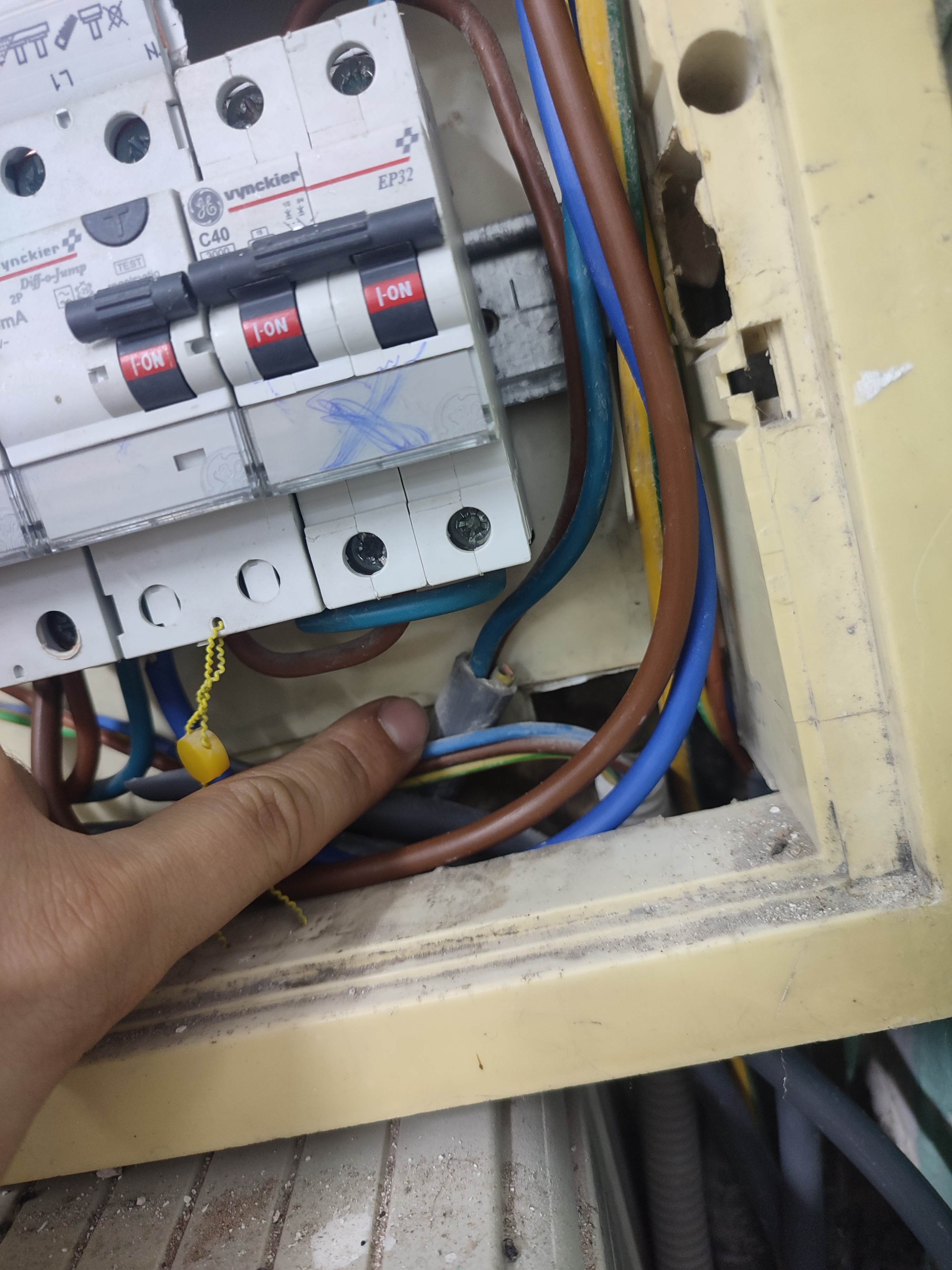 Omdat de kast niet voorzien was op 60A hebben ze er een automaat voorgezet van 40A zodat de kast niet hoefde aangepast te worden.