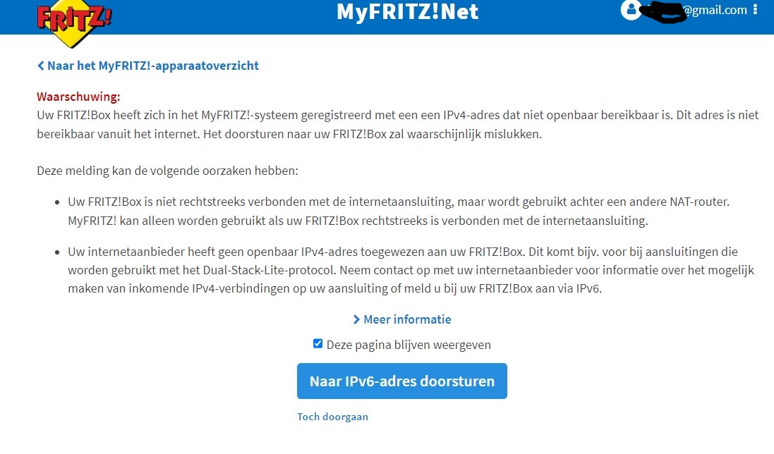 Ik diende eerst een myfritz account aan te maken. (weet wel niet waarom dit nodig is).