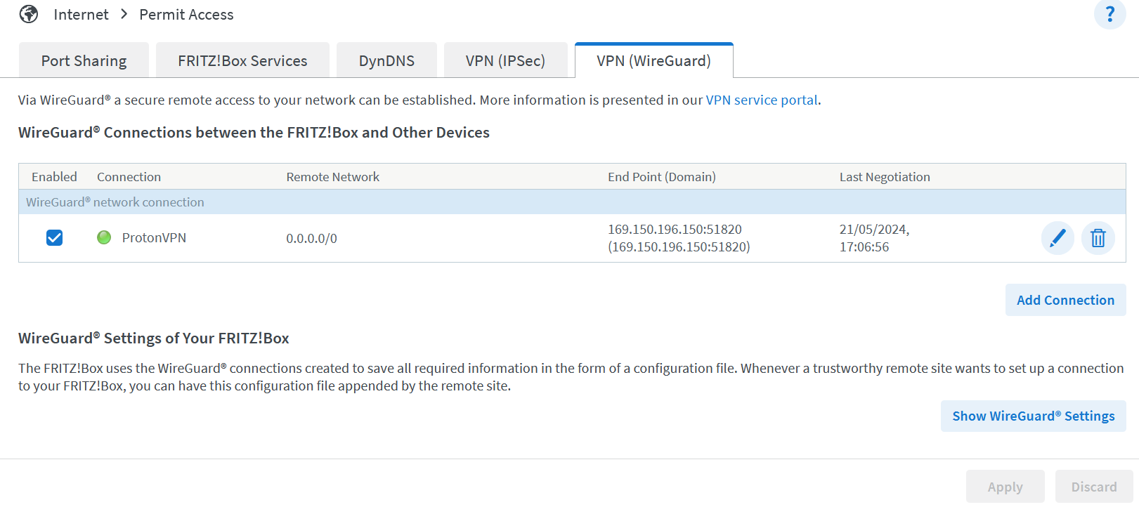 Wireguard op fritzbox is juist om een tunnel naar je prive netwerk te hebben.