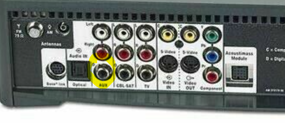 Ik dacht dat de Bose 123 ook een S/PDIF ingang had? Is dit niet de zwarte D onder de witte Left en rode Right?