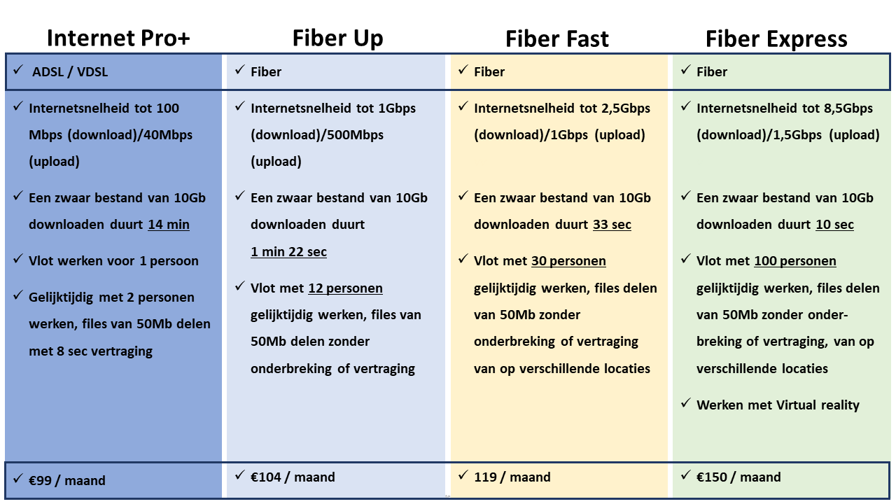 - dat de tabel beperkt blijft tot "internet-only" formules (allerhande packs zou het te complex maken).