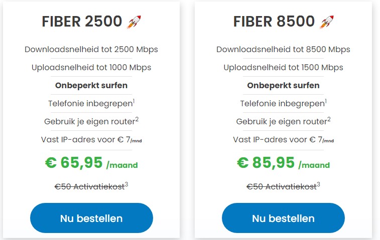 Fastfiber 8500/2450 met fiber 8,5 Gbps/2,4 Gbps