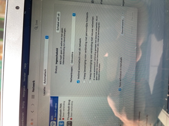 -alles werkt, behalve mijn macbook. Die werkt als ik wat goochel met WiFi aan/uit (waar hij niet op verbonden is) opeens wel
