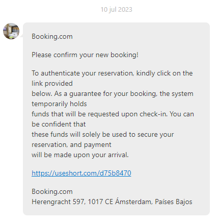 Want het lijkt me duidelijk dat zijn bericht gewoon begint met "booking.com" om het zo legitiem te maken.
