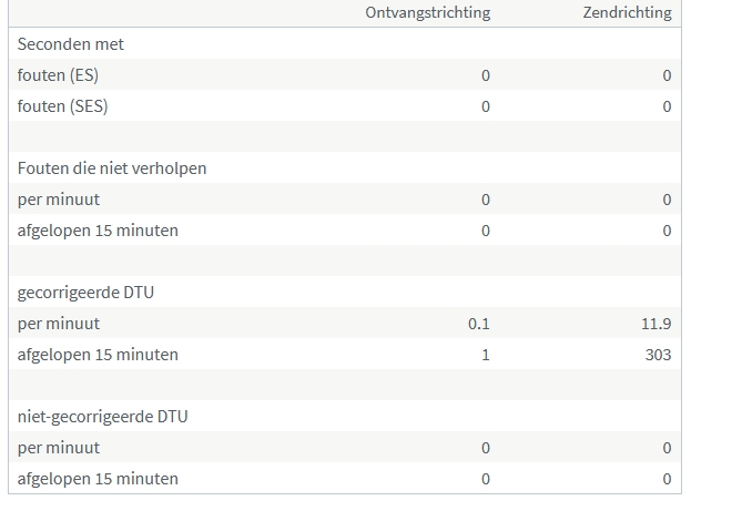 - deze ochtend om 5u terug slecht signaal dus na iets meer dan 10u correct werken (0 errors maar wel veel DTU's, SNR 13/6, lijncapaciteit 95/15)