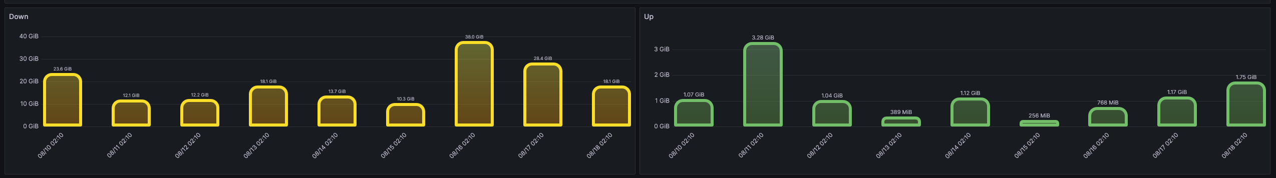 Verder aan de hand van homeassistent bandbreedte monitoring in Grafana, gaat ook met Orangemodem:
