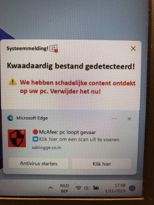 Op de laptop van mijn echtgenote (W11) verschijnen er plots pop-ups met de melding dat er meerdere virussen zijn gedetecteerd.
