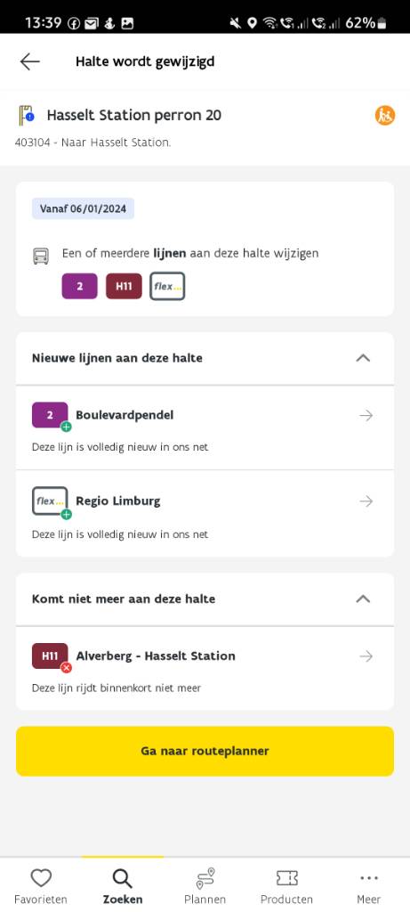 - de bushaltes die je gebruikt zijn afgeschaft en de vervangende haltes zijn veel verder