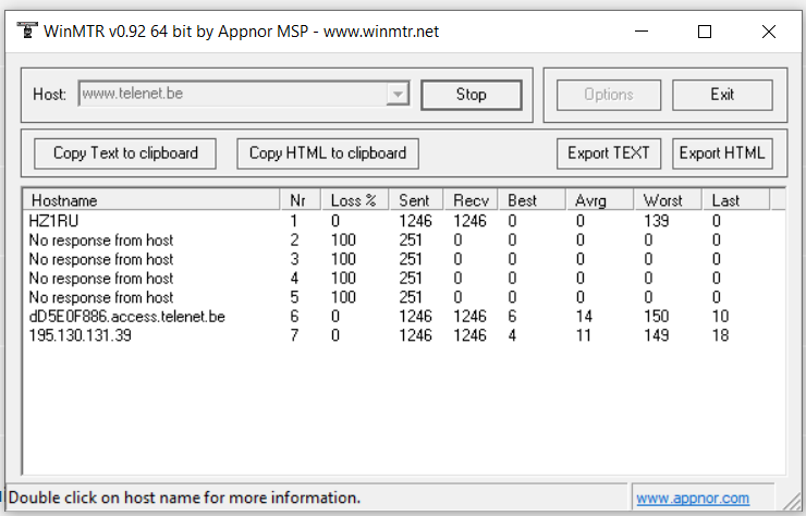 WinMTR - Telenet