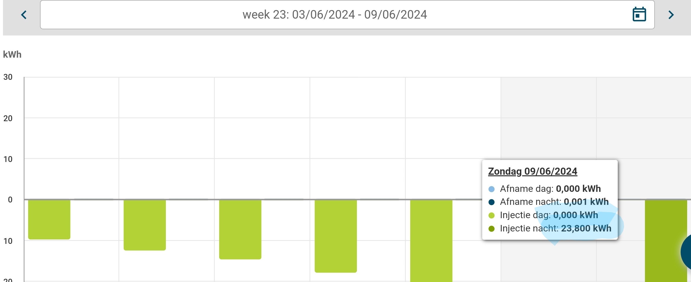 De totalen en deelverbruiken van de DM in de Fluvius app zijn overigens ook correct en hebben dus geen negatieve impact op de jaarafrekening. Ik merk alleen op dat hun gestapelde tab alleen de waarden van de pieken (dus ook dat van het WE) weerhoudt en niet deze van het dal. Werk voor hun IT afdeling dus (en alleen echt belangrijk voor wie een energiecontract heeft met één tarief en daar statistieken uit wil trekken en/of eigen metingen mee wil vergelijken).