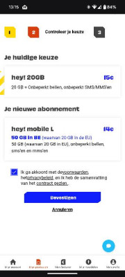 Ik vind het trouwens nog altijd schandalig, en dat zie je ook in de vele reviews, dat je bij Hey nog altijd geen fatsoenlijke limiet kunt instellen om niet te hard buiten je bundel te gaan, al dan niet in roaming.