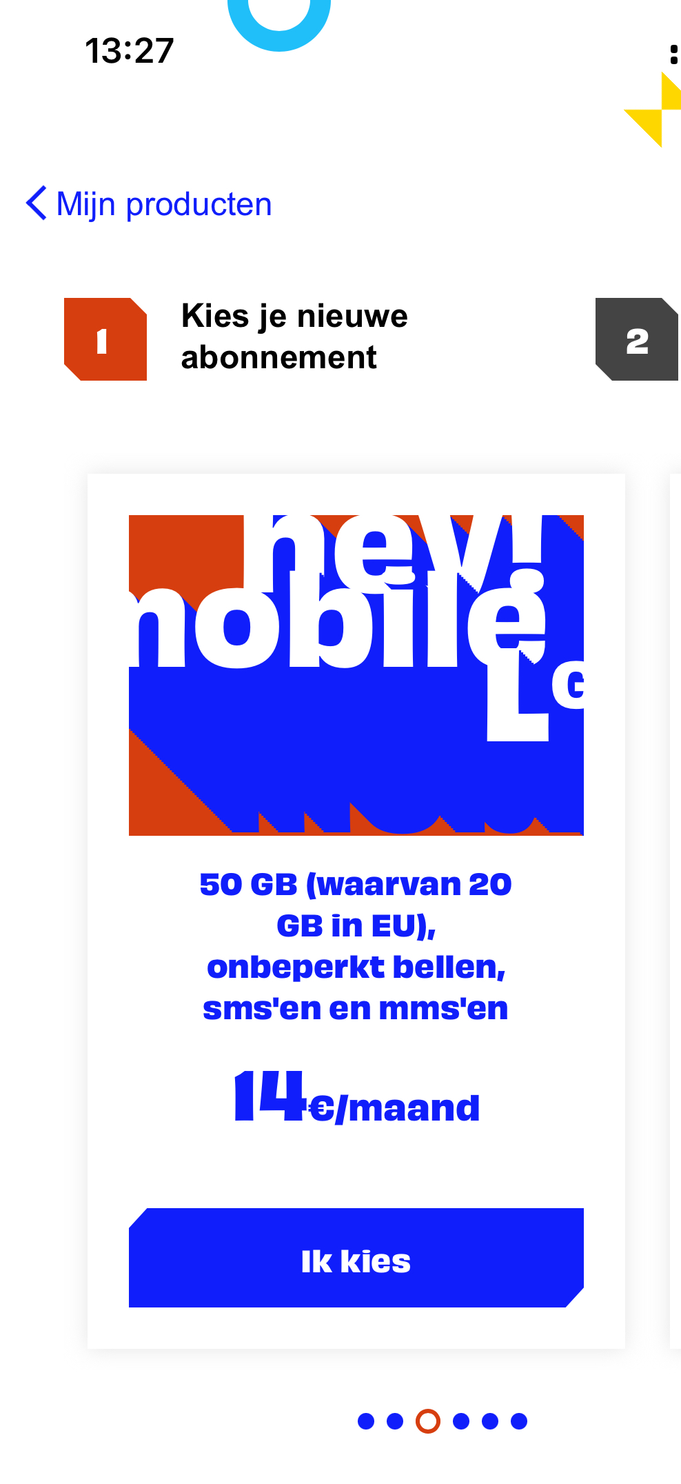 In de app krijg ik de versie met onbeperkt bellen maar zie ik niet direct de -€5 korting: