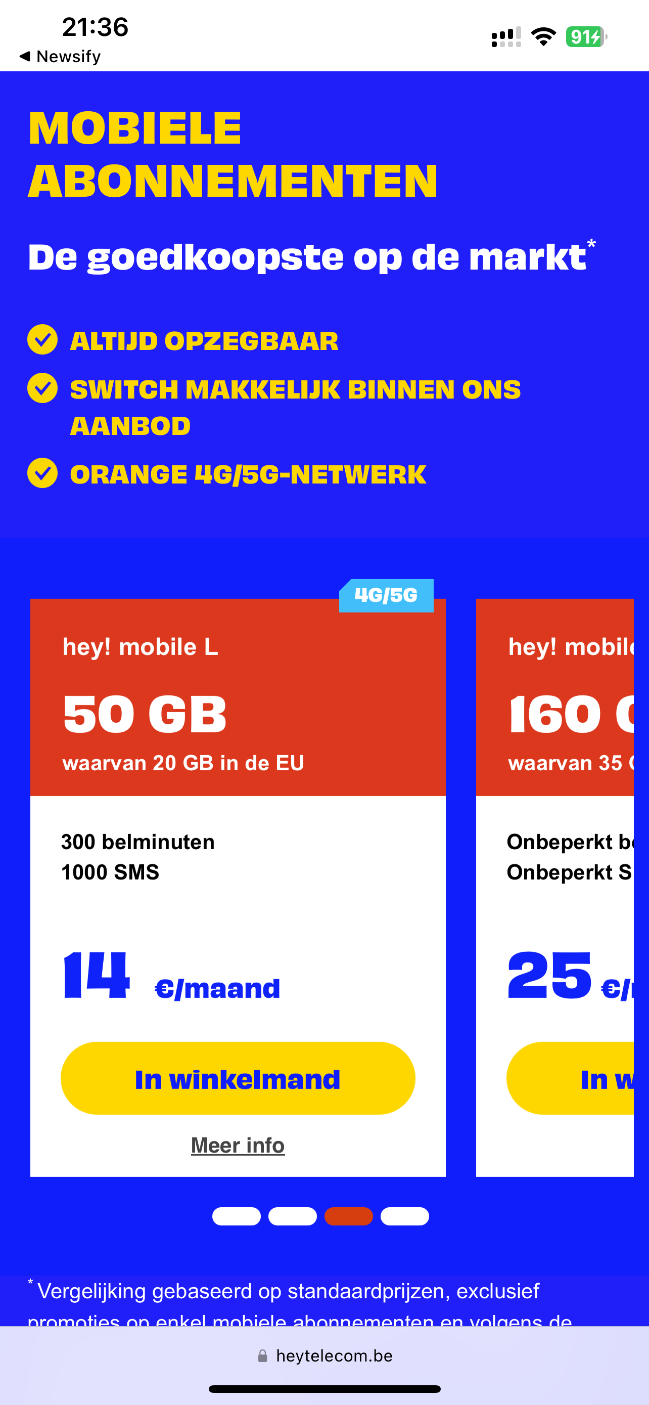Eerste nr heb ik kunnen veranderen naar hey! mobile L. Overzicht geeft aan Prijs 9,00 €/maand