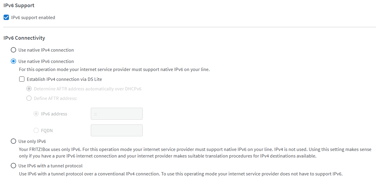 Hoe vertaalt bovenstaande zich naar een Fritzbox? Deze krijgt een IPv6 adres, maar erachter geen IPv6.
