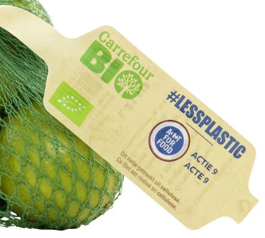 Contreet uit deze #11 campagne, de plastic netjes (=PMD) van o.a. citrusfruit worden vervangen door nog beter recycleerbare netjes. Top, fantastisch... Alleen zijn het cellulose netjes geworden....
