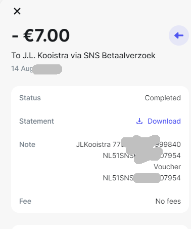 In de Tikkie betaal-link van SNS bank, in dit geval, stond "J.L. Kooistra heeft je een SNS Betaalverzoek van 7 euro gestuurd".