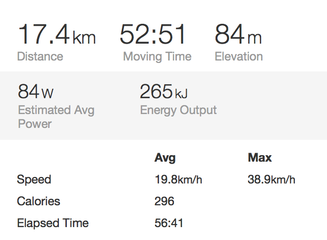 En ipv 48 minuten onderweg, heb ik maar 1 uur en 20 minuten gefietst, was totaal niet bezweet als ik thuis kwam!