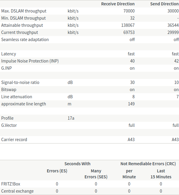 Ter info, mijn attainable throughput waarde is gestegen sinds 7.12. Van 125000 naar 132500 voor receive. De send waarde is ongeveer hetzelfde gebleven. De SN waarden bleven 15 en 10 dB.