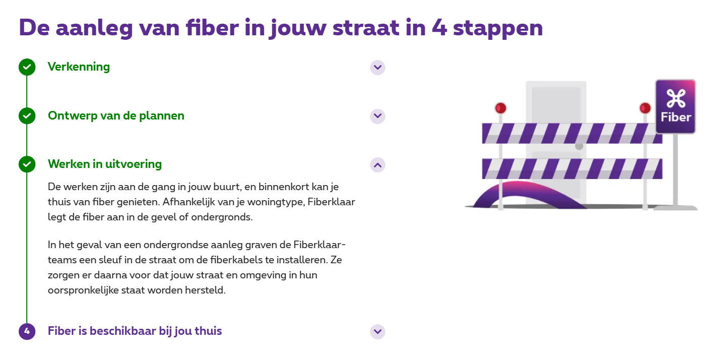 - Fiberklaar Update over de werken in jouw buurt: https://www.fiberklaar.be/nl/projecten