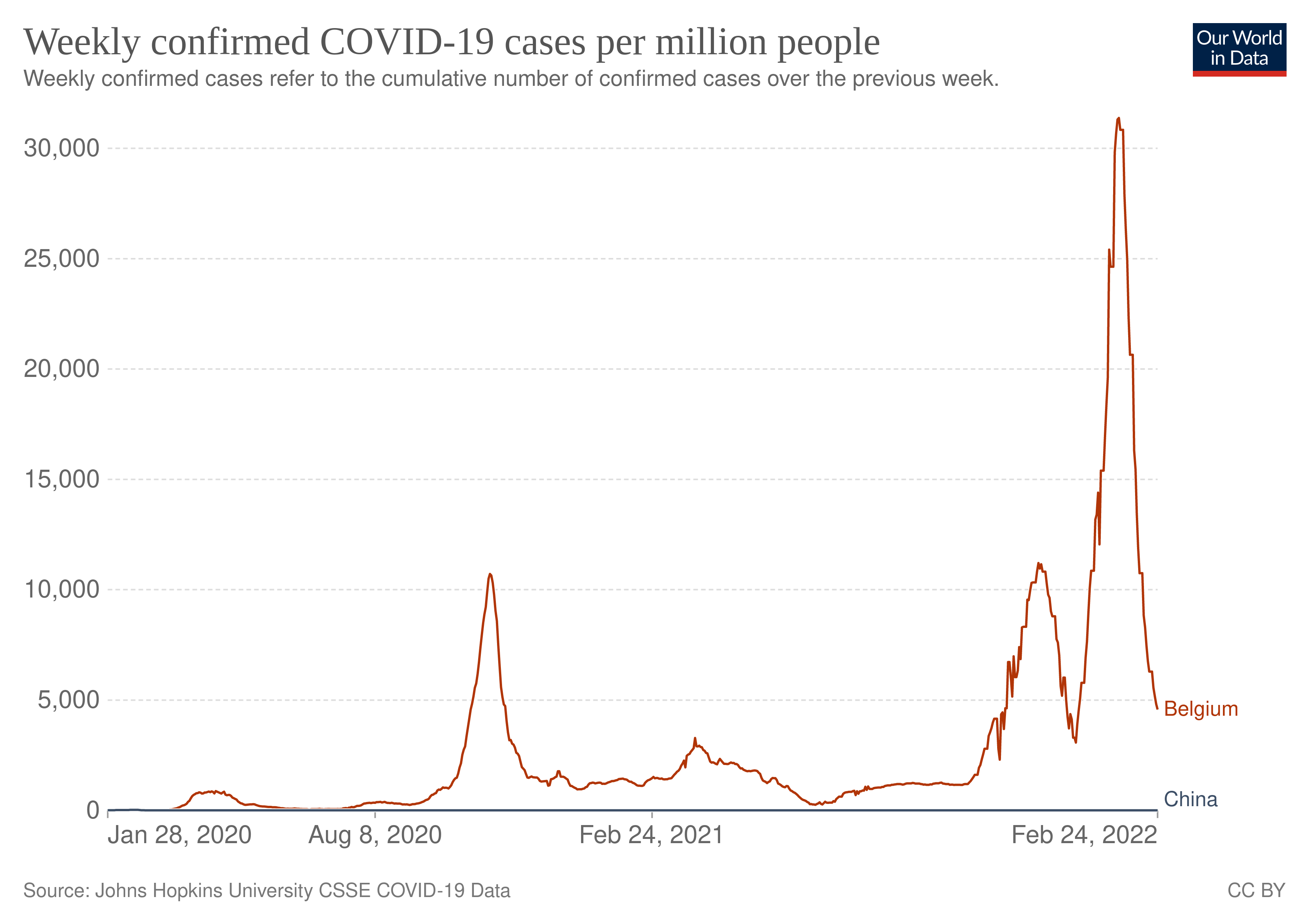 Je hebt TOI ook in twijfel getrokken voor de omicron uitbraak in Hong Kong terwijl ze daar gedurende twee jaar zo goed als een flat liner hebben gehad. Dat valt niet te ontkennen. Zelfs als we de huidige omicron uitbraak bekijken in HK brengen ze het er beter van af dan pakweg België of Nederland en zijn ze waarschijnlijk hun piek voorbij.