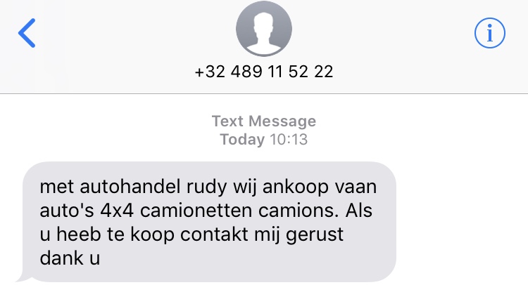 Voor de "nummer"-verzameling: regelmatig wenst iemand met nummer +32 485 74 18 24 mijn auto te kopen... via sms. :lol: