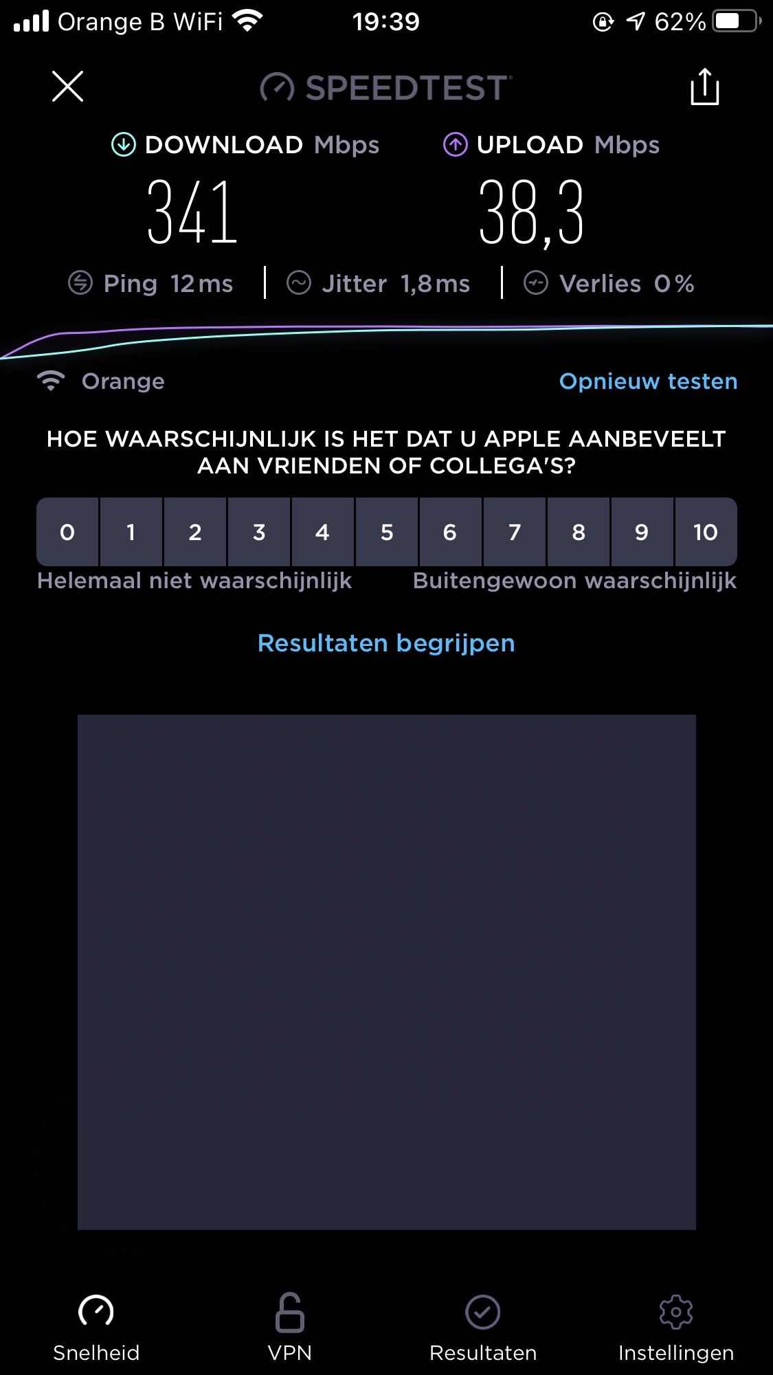Maar terug hetzelfde liedje bij orange, volgens hen zijn deze snelheden via wifi volkomen normaal. Veel sneller moet je niet verwachten. Snelheden van 380/37 dak anders haal, is bijna niet mogelijk of toch heel uitzonderlijk![]()
