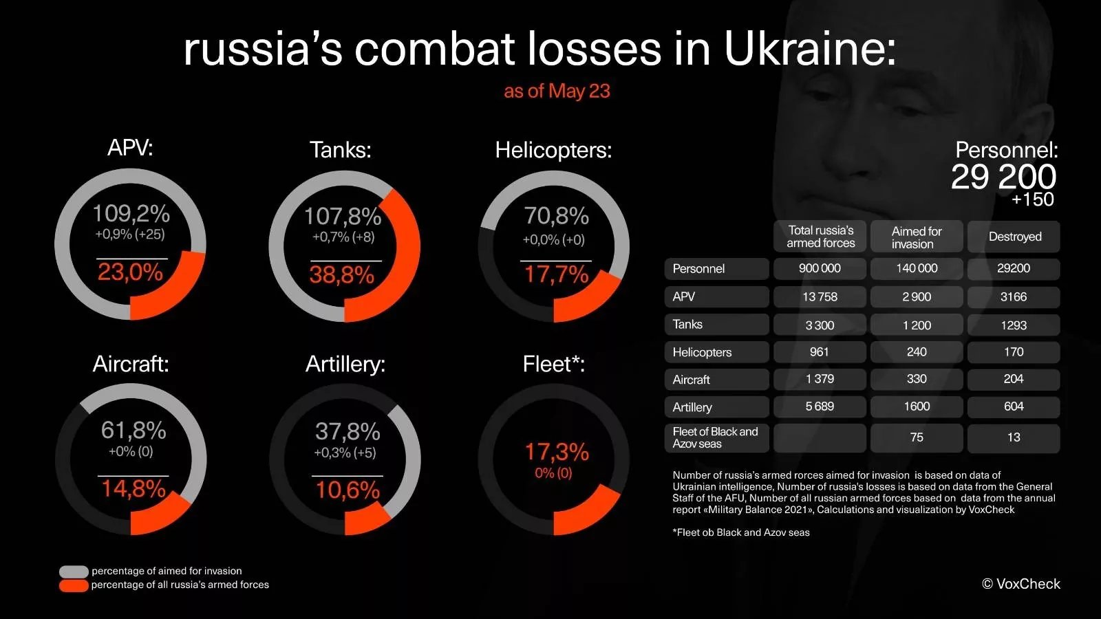 Geen idee of het louter perceptie is maar de massale vernietiging van Russisch materiaal en troepen is precies minder aan het worden (nogmaals louter perceptie of geraken de Westerse wapens niet op de juiste plaats, of ... ?).