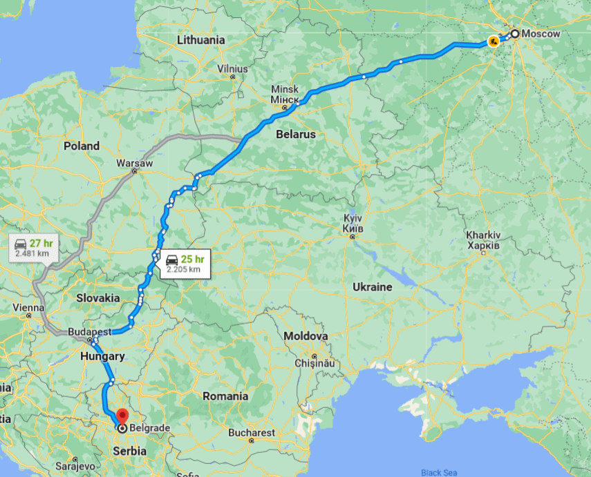 boran_blok schreef:Goh, da is maar 25u met den otto, hij moet wel rekening houden met wat wegenwerken zo te zien en ik weet niet of Polen zo happy zou zijn om hem door te laten.