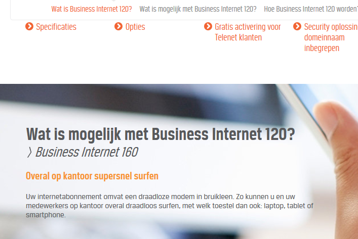 Ik heb geen ENKEL ander telenet product, toen ik naar het 0800 nr belde op die pagina van business internet, vertelde die sales mij doodleuk dat het sinds vorige week Business Internet 160 noemt en dat het voor de prijs is van Business Internet 120.