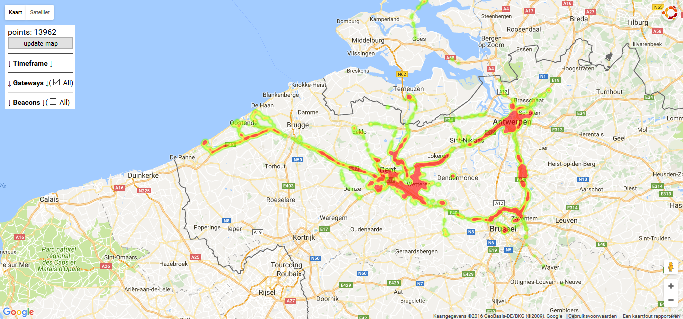 Zoals je in het kaartje hieronder ziet kom ik regelmatig op drukke plaatsen (wat je daar ziet is de data van de voorbije 14 dagen) en toch merk ik nooit problemen (en hopelijk blijft dit zo). Ik doe 75% van de calls zelf in de auto daar ik dan toch tijd genoeg heb met de afstanden welke ik doe. Wil gerust de baan tussen Kortrijk en Roeselare wel eens testen voor je. Dat je latency (ping) nooit beneden de 90 geraakt vind ik ook bizar, als je kijkt naar mijn resulaten (vorige pagina) valt dit vrij goed mee. Een mast naast je deur wilt trouwens niet zeggen dat je goed ontvangst hebt, integendeel, de kans is groot dat je "onder" de straling zit;..