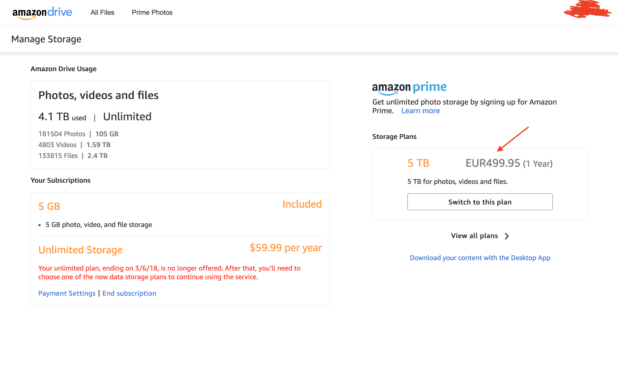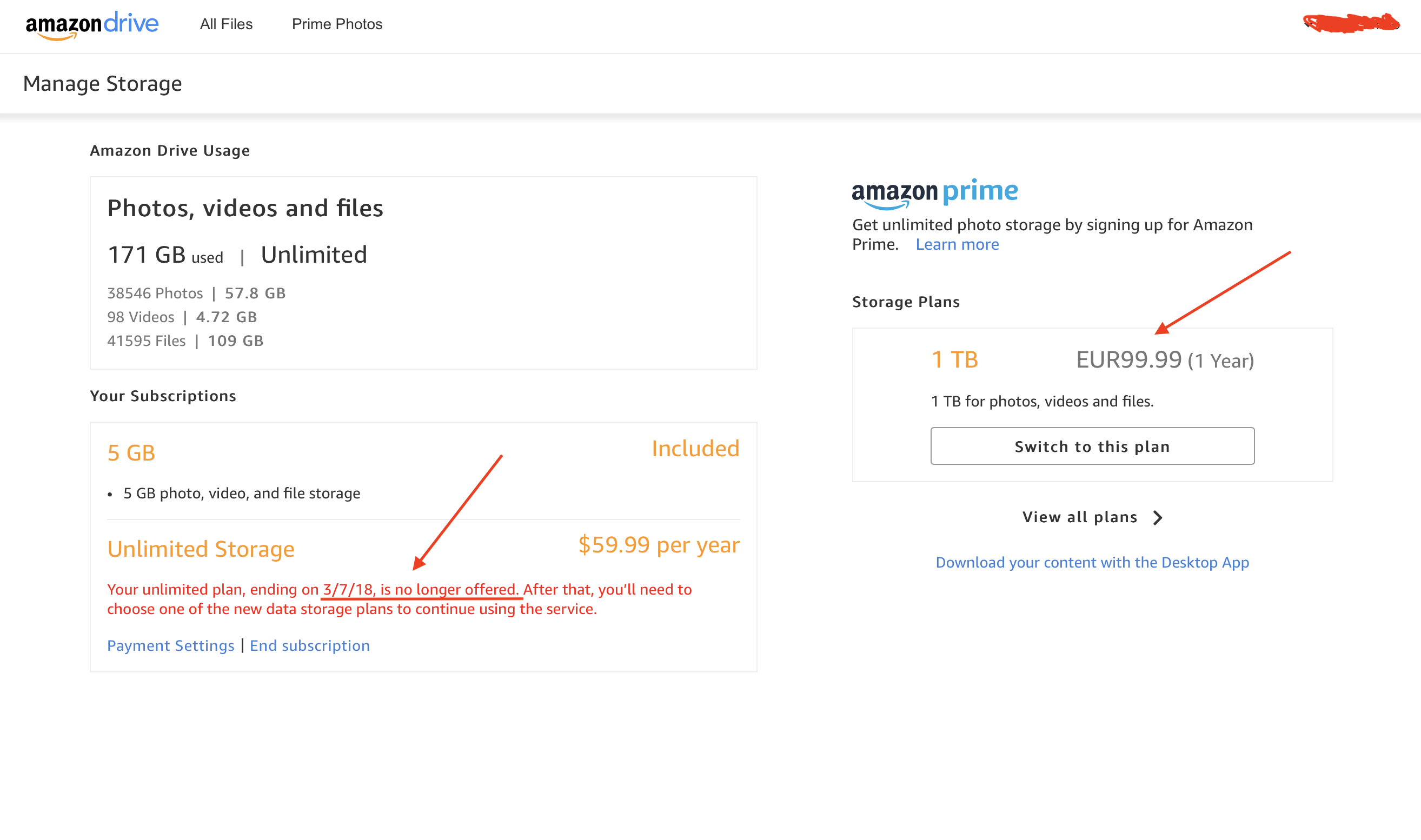 Ik heb dus net een mailtje van Amazon FR gekregen, in FR is het gedaan met "unlimited".buthead schreef:Voorlopig word het in EU niet gelimiteerd, de vraag is juist wanneer komt het. Zeer waarschijnlijk wachten ze nog effe tot ze meer klanten hebben en dan hup gedaan.johcla schreef:Ik heb 3TB staan bij Amazon DE, voorlopig nog geen mail gehad