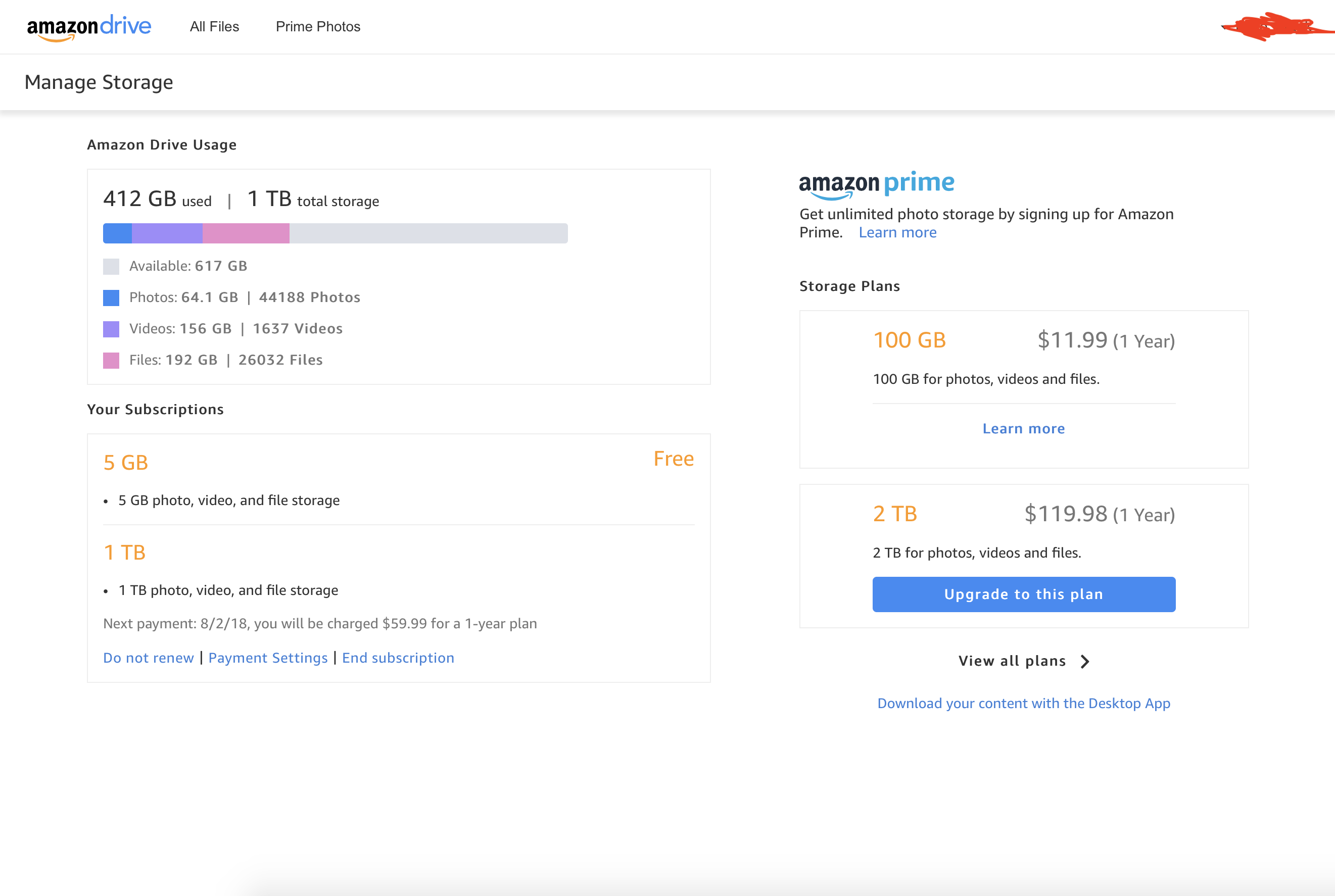 Vous pouvez à tout moment annuler votre abonnement ou passer à un nouveau plan de stockage annuel de 100 Go pour un tarif de 19,99 € par an, ou pour 99,99 € par To par an, limité à 30 To, en accédant à la page Gérer votre espace.