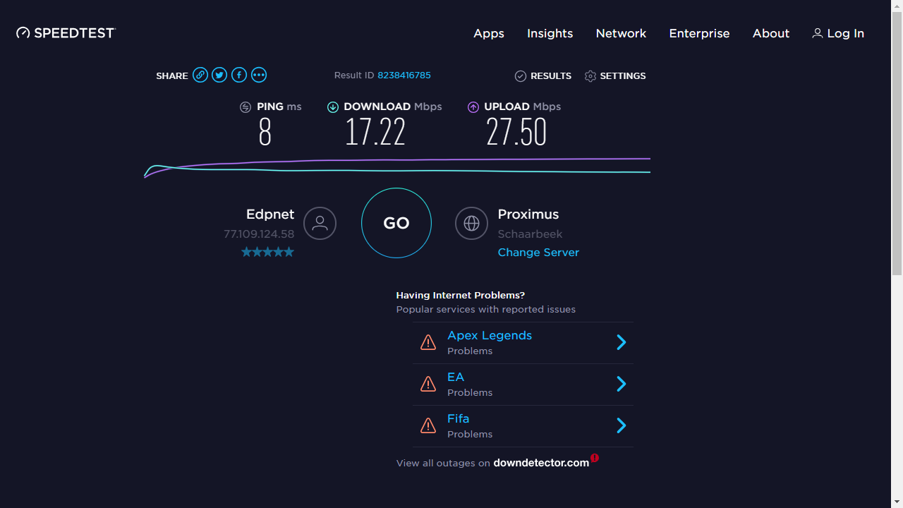 Ik neem aan dat speedtest.net meestal verbindt met de EDPnet server als je vanop een EDPnet verbinding een speedtest doet?krisken schreef:Tenminste, niet op de speedtests die ik gebruik (zelf opgezet op diverse plaatsen). Op de speedtests van speedtest.net heb ik plots wel de volle snelheid. Zou bijna denken dat bepaald verkeer wat meer voorrang krijgt dan ander verkeer ...