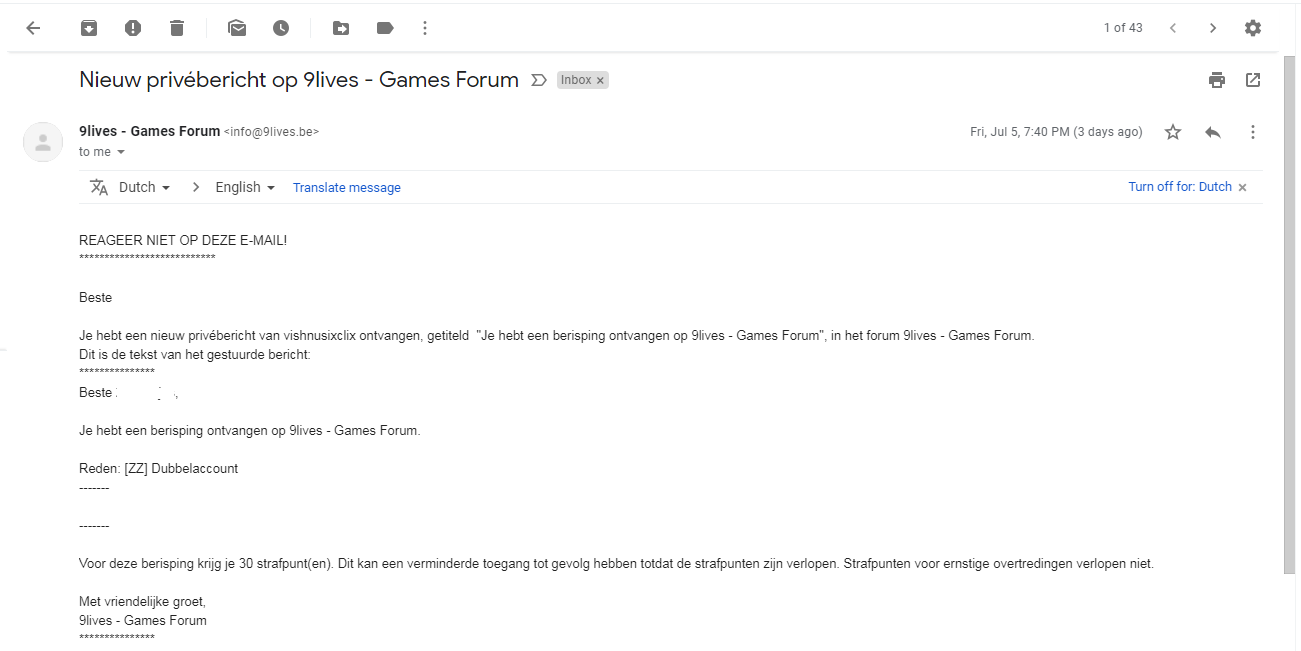 Ik lig plat .... volgens de modjes heb ik een dubbelaccount. Maar ik heb helemaal geen zin meer in 9L na dit voorval, en heb dus geen 2e account aangemaakt ...