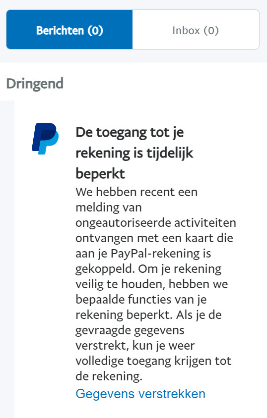 Een mens zou schrik beginnen krijgen als ik dat zo zie.satsurfer schreef:Gebeurde tijdens ik op het werk was (en daar heb ik geen tijd voor/mag ook niet van werkgever) of in het holst van de nacht (als pc's uit zijn bij mij en ik slaap)karine schreef:Nu met de sms verificatie lijkt paypal toch heel veilig.