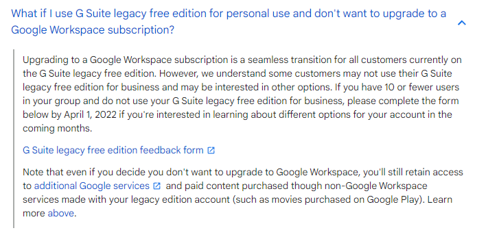 Google might offer an alternative for personal, non-business users of G Suite legacy free edition: