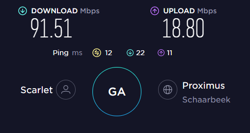 Hier nog steeds Scarlet One: 86,99/24,98 het verschil met Trio is dat het met One de hoogst haalbare snelheid krijg deze snelheden zijn ook de hoogste ooit gemeten hier thuis.