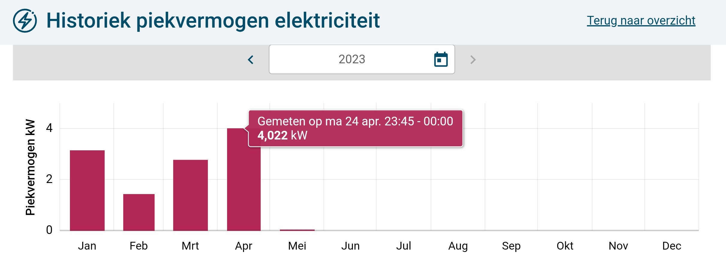 Wij laden hier bv. al vier jaar een BEV in een full electric woning. De laagste technische maandpiek bedroeg 0,05 kW, de hoogste 4, 02 kW en de laatste gemiddelde facturatiepiek voor 2023 bedraagt daardoor 2,99 kW*.